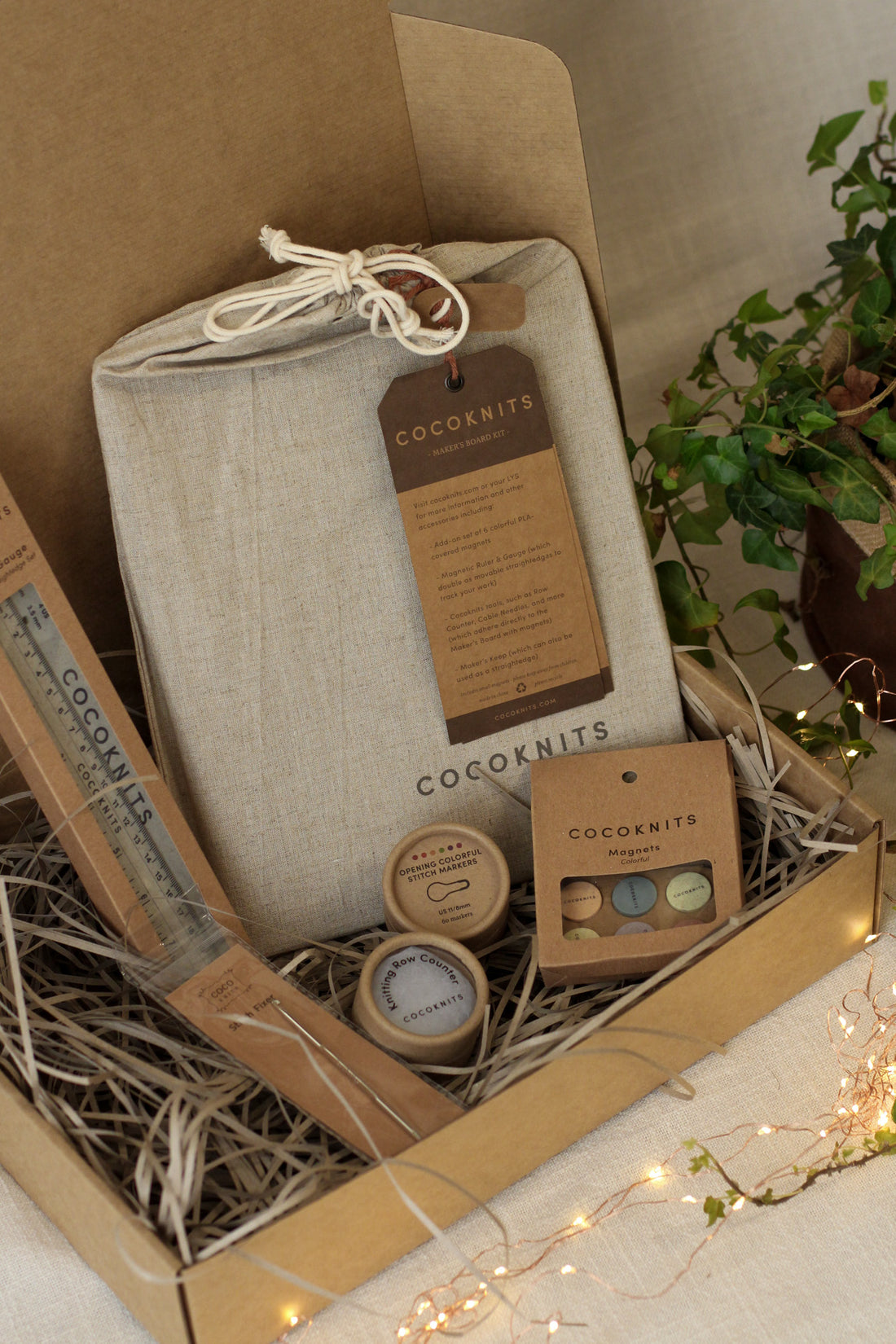 The Cocoknits Deluxe Gift Set is packed with beautiful tools for knitters and crocheters. No matter the skill level or project preference, this set is sure to delight. Including the most popular Cocoknits tools - the Maker's Board and accessories, Magnetic Row Counter, Stitch Fixer and Stitch Markers.